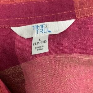 Time and Tru Women's Half Button Sleeveless Top In Shocking Pink Large 12/14