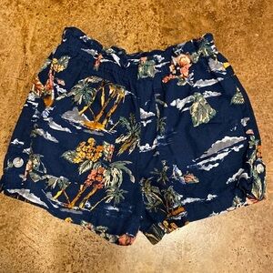 Time and Tru blue Hawaiian print linen cuffed shorts. Size medium, linen blend, approximately 3” inseam, see pictures for details.