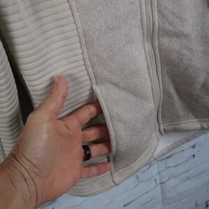 TAN OATMEAL HEATHER ZIP UP FLEECE JACKET WITH POCKETS SIZE XS PRE OWNED NO FLAWS BY TIME AND TRU