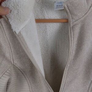 TIME AND TRU TAN OATMEAL HEATHER ZIP UP FLEECE JACKET WITH POCKETS SIZE XS
