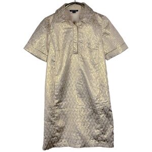 TIMELESS BY NAEEM KHAN SHORT SLEEVE JACQUARD GOLD METALLIC SHIFT DRESS