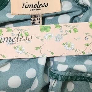 TIMELESS LONDON US 14 1X plus Green Polka Dot Long Sleeve Wide Leg Jumpsuit B69