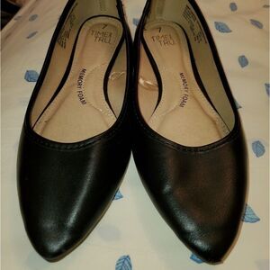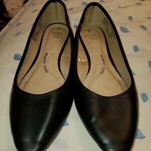 TIME&TRU MEMORY FOAM BLACK WOMEN"S FLATS SIZE 7 USE ONLY ONE TIME SMALL DAMAGE IN THE EVRY FRONT OF THE SHOE THIS ITEMS IS PRE-OWNED EXCELLENT CONDITION YOU MIGHT MISTAKE FOR NEW CHECK THE PICTURES