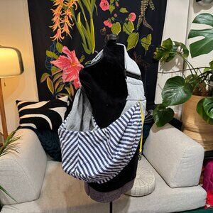 TIMETUU Pet Gear: Reversible Cross-Body Pet Sling Pet Carrier, Grey/Blue Stripe