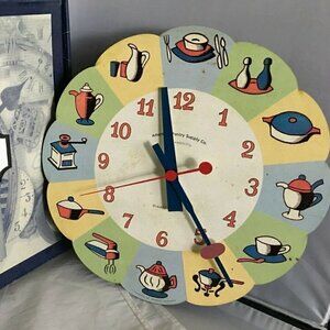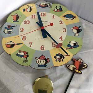 TIMEWORKS Breakfast Time Kitchen Wall Clock with pendulum Brand New in Box RARE HTF. It works great and is adorable. Timeworks Berkeley, California.