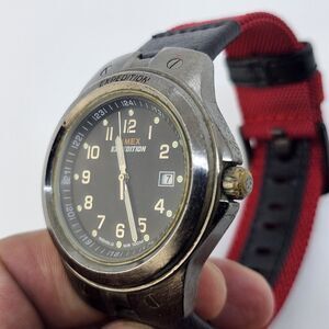 TIMEX Expedition 40MM Men's Watch Red Canvas Bands New Battery READ DESCRIPTION