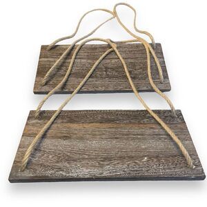 TIMEYARD Decorative Wall Hanging Shelf - Distressed Wood Jute Rope Floating Shelves - Rustic Home Wall Decor - Set of 2