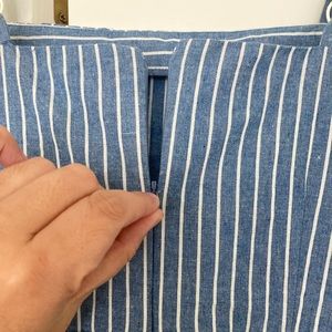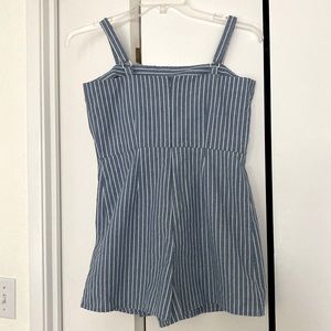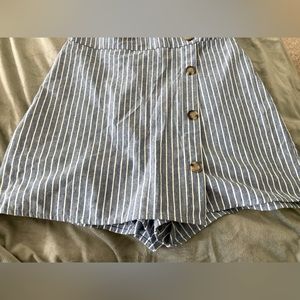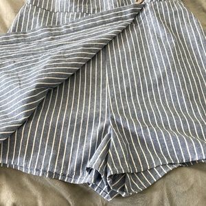 TIMING Faux Dress Shorts Romper skirt fold over front Pinstripe Denim Size M EUC