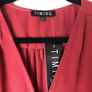 Red wrap front v-neck blouse by TIMING. Size Small. Tags attached.