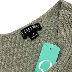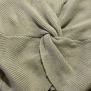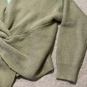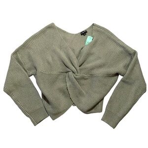 TIMING Twisted Knot Front Crop Ribbed Thick Knit Sweater Sage Green