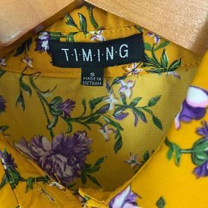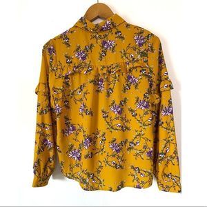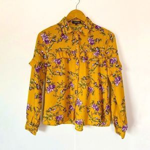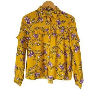 TIMING Mustard Yellow Floral Ruffle Long Sleeve Button Up Shirt in great condition!