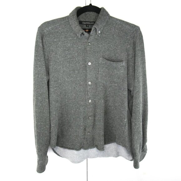 TIMO WEILAND Gray Knit Terry Button Up Shirt