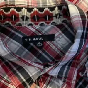 TIN HAUL WESTERN SHIRT MENS SZ XL PLAID PEARL SNAP LONG SLEEVE Cowboy Rockabilly