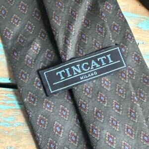 TINCATI MILANO Silk Tie Made In Italy Geometric Green Background 3.5” Width