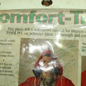 The TINGLEY Comfort Tuff two-piece S63219 Blaze Orange Rain Suit in size XXXL with a rollaway hood is a new personal protective equipment designed for business and industrial settings. Made by the brand Tingley in China, this suit is ideal for keeping individuals safe and dry during rainy or wet conditions. With a bright orange color and a warning label regarding potential health hazards, this protective suit offers both visibility and safety for those working in wet environments.