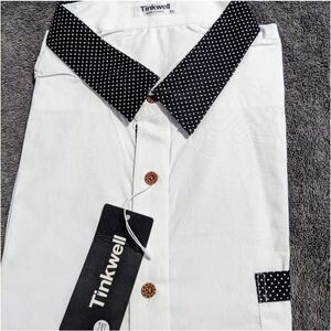 TINKWELL Shirt Men’s Long Sleeve Casual Button Up Slim Fit XXL White Black NWT