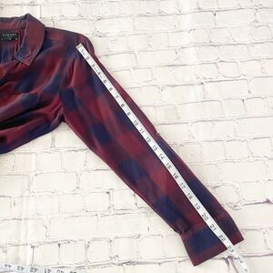 TINSEL Burgundy Purple V Neck Button Front Roll Tab Sleeve Shirt Dress M