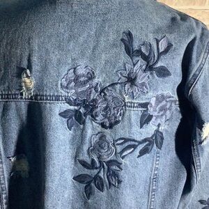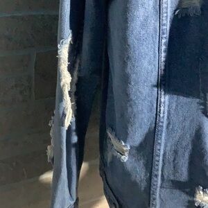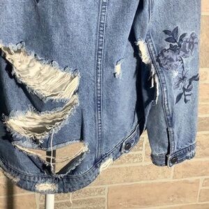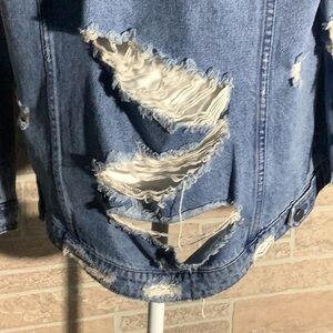 ⭐️ TINSEL - Sz M - totally distressed jean jacket all over - rounded hem as well