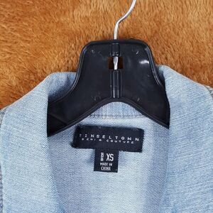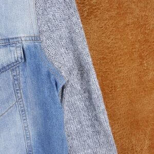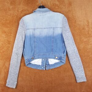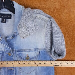 TINSELTOWN Womens Jean Jacket XS Light Wash Sweater Sleeve Stretch Denim Pockets