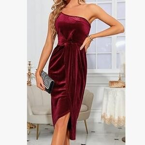 TINSTREE One Shoulder Velvet Bodycon Ruched Cocktail Party Dress Wine Red Size M