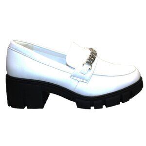 TINSTREE Platform Loafer Women White Silver Chain Size 10 Chunky Heel Slip On