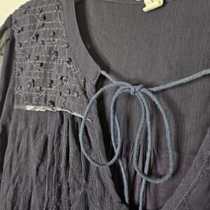 TINY Anthropologie Embroidered Keyhole neck Blouse Top Women’s Size L