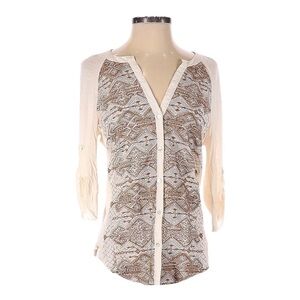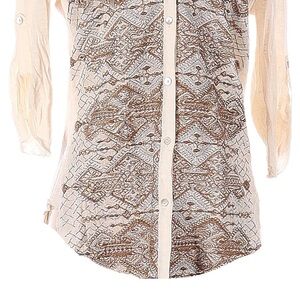 TINY Anthropologie Ivory Embroidered Boho Lurex Silk Blend Blouse Size S