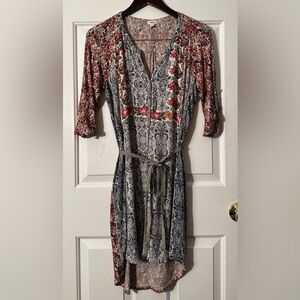 TINY Anthropologie S Perenne Lightweight Shirt Dress Tencel Silk Roll Tab Sleev