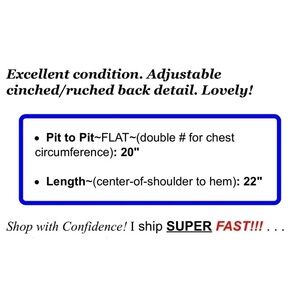 Excellent condition. Adjustable cinched/ruched back detail. Lovely!