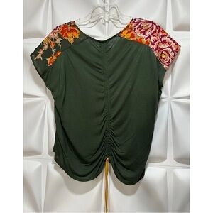TINY Anthropologie Sz SP PS Floral Print V Neck Ruched Draped Back Top Blouse