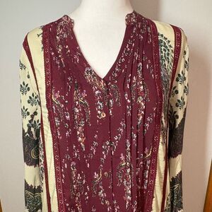 TINY Anthropologie bohemian boho peasant patchwork Gwen drop waist shirt dress s