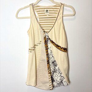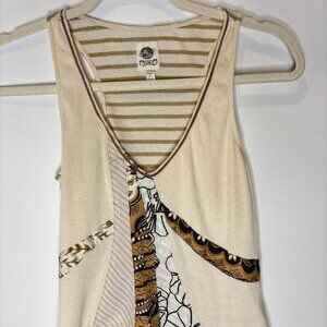 TINY Y2K Ribbed mixed print Neutral Boho Racerback Tank Top Size Small b115