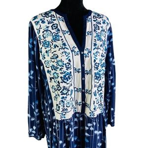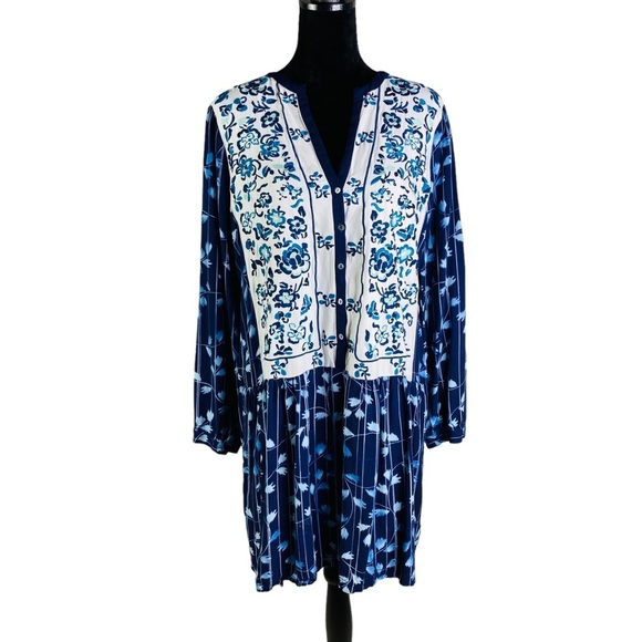 Stylish mini dress with floral pattern. Features a V-neck and long sleeves. Perfect for casual outings, very light for warm weather or layer it up for fall with some tall boots! Xo