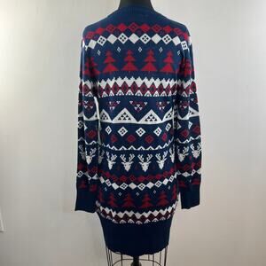 Tipsy Elves Blue Red White Sweater Dress Knit Sequin Fair Isle Size Large L NEW