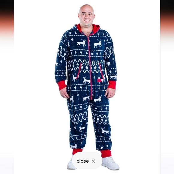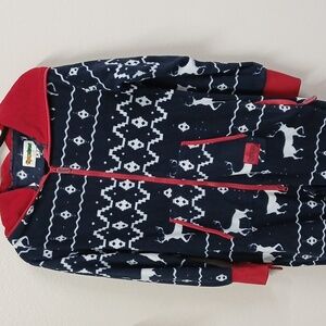 TIPSY ELVES Blue Reindeer Fleece Hooded One Piece Jumpsuit Pajamas Men's Small