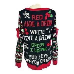 TIPSY ELVES MEN'S DRINKING GAME UGLY CHRISTMAS SWEATER HOLIDAY SIZE L PARTY TOP