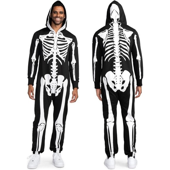 TIPSY ELVES ONE PIECE ZIP UP MASK SKELETON JUMPSUIT Unisex Size XL HALOWEEN