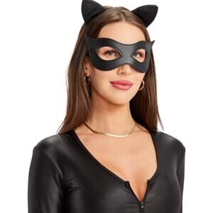 A staple of any self-respecting woman's Halloween wardrobe, this women's black cat costume is sure to turn heads at your next Halloween party. Ladies, Michelle Pfeiffer can't hold a candle to you in this adult cat costume - the bodysuit skims over every inch of you effortlessly, and it doesn't need a crowbar to get you out of it at the end of the night! Our black cat costume is as practical as it is gorgeous - made from flexible materials, it was made for dancing (or crawling around neighborhoods kicking bad guys' butts - whatever suits) and features a front zipper to let you decide just how risque you want to be. To top it off, the black cat costume features your very own pair of kitty ears. Take it up a notch with feline makeup and even whiskers, or reuse it next year as part of a sexy secret agent ensemble.