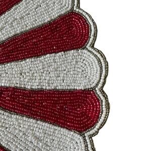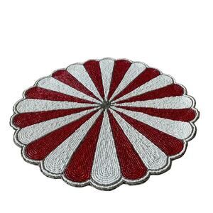 TIRAMISU Hand Beaded Placemat Charger 15in Holiday Red & White Candy Stripe NEW