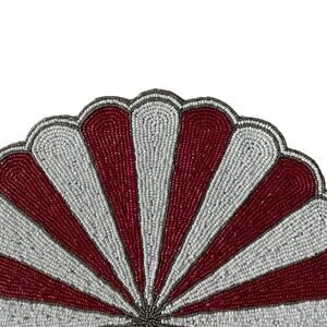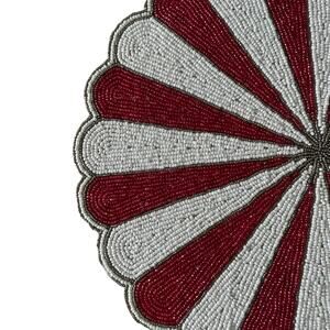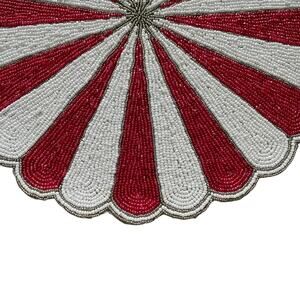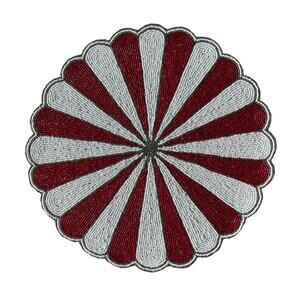 TIRAMISU Hand Beaded Placemat Charger 15in Round Red & White Candy Stripe