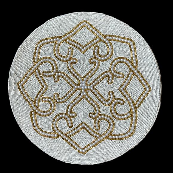 Placemat Material: White and Gold Glass Beads & White Pearls