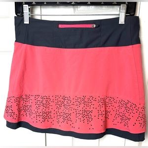 TITLE NINE Nimblene Skort Skirt Boy Shorts Coral Pink Gray Laser Cut Out 150997
