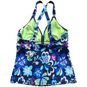 Vibrant blue and green floral tankini top by Title Nine.