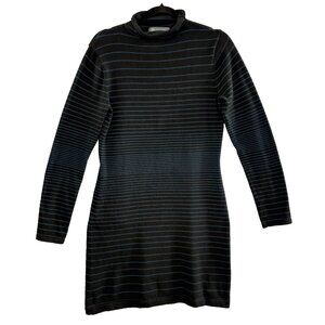 TITLE NINE Women Turtleneck Sweater Dress Sz M Black Striped Long Sleeves 93-8