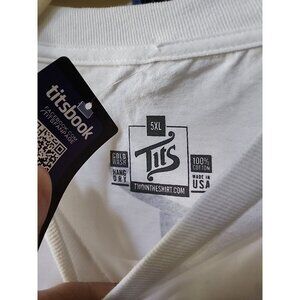 The T.I.T.S. Two In The Shirt NWT Premium Fit 5XL T-Shirt is a comfortable and stylish option for big and tall men. Made from cotton with a regular fit, this short sleeve shirt is suitable for all seasons and features a double-sided design. The white color and classic theme make it a versatile piece that can be easily machine washed for care. Perfect for those looking for a bohemian or 90s-inspired look, this T-shirt from the brand Two In The Shirt is a great addition to any man's wardrobe.