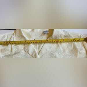 TJ Bentley Vintage Blouse Sz Large Button Up Cream with Geometric Design Vtg