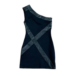 🎉 TJ COLLECTION Vintage Black One Shoulder Pleather Design Dress, size 2