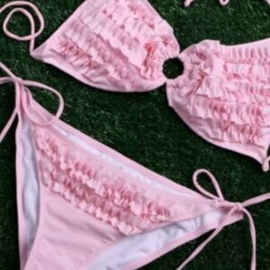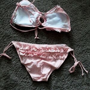 T&J Designs Bikini String Ties Pink Rufflebutt Lined Women's sz M