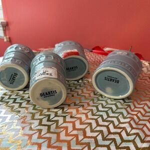 Baby blue ceramic bathroom set includes soap dispenser, two cups, and toothbrush holder
