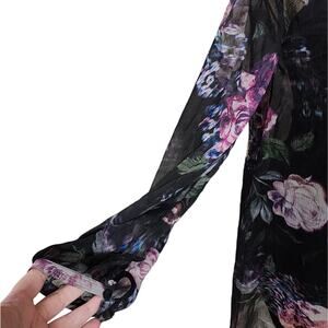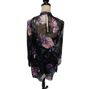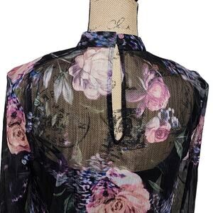 TJD Floral Sheer Long Sleeve Mock Turtleneck Mini Dress Size 8 Medium